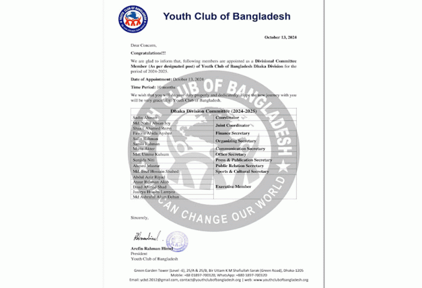 A new committee for Youth Club of Bangladesh, Dhaka Division, was declared on our official page.