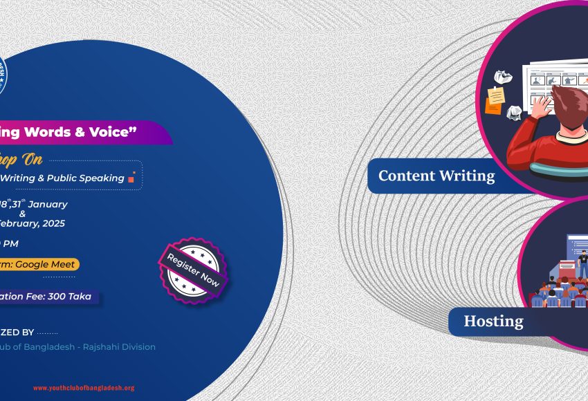 On 17th ,18th ,31st January & 1st February, 2025 Youth Club of Bangladesh – Rajshahi Division organized a four-day workshop on Content Writing & Hosting. This session focused on content writing & Hosting providing participants with the skills to express themselves effectively both in writing and while hosting events. Participants […]